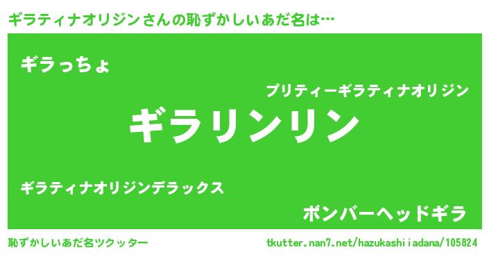 | ポケモン風あだ名 | 『ヒギラティナオリジン』『ギラテダネ』 |