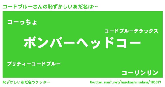 | 男性向けラノベタイトル風あだ名 | 『この素晴らしい世界にコードブルーを!』 |