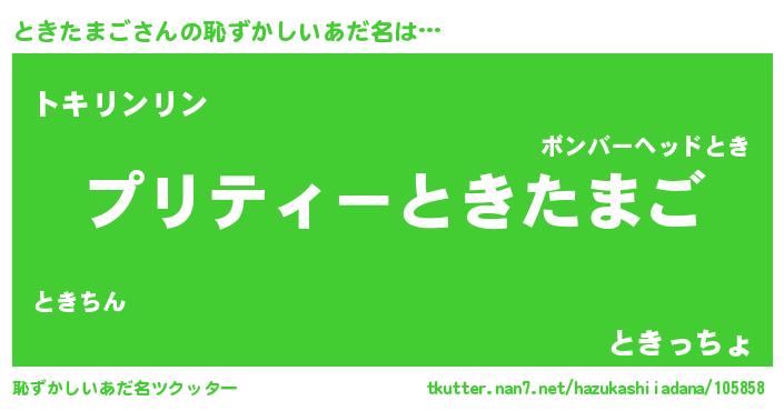 | ヒーロー風カッコイイあだ名 | 『スーパートキタマゴ』『魔戒騎士トキ』 |