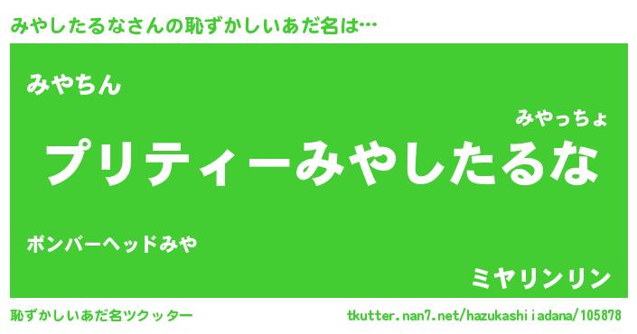 | ヘコむあだ名 | 『みやにー』『みやしたるな(小並感)』 |