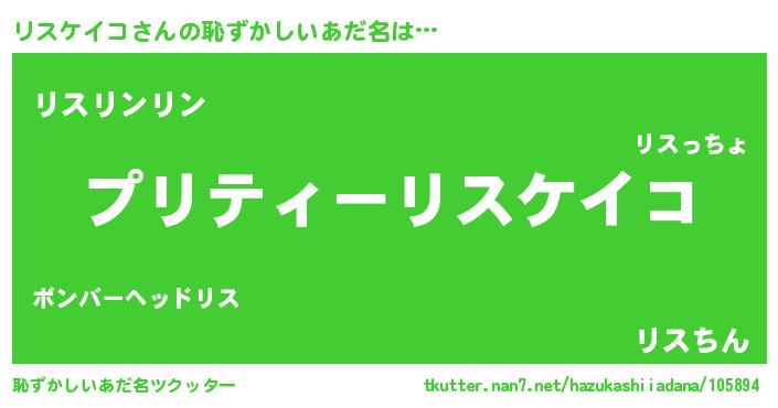 | ヒーロー風カッコイイあだ名 | 『スーパーリスケイコ』『銀牙騎士リス』 |