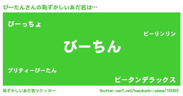 | ヘコむあだ名 | 『びーたん(笑)』『酢こんぶ』 |
