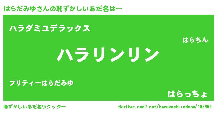 | ポケモン風あだ名 | 『ヒハラダミユ』『ハラゴンZ』 |
