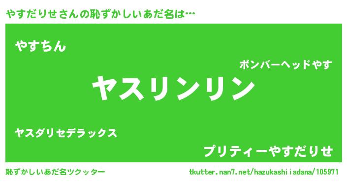 | 男性向けラノベタイトル風あだ名 | 『ダンジョンにやすだりせを求めるのは間違っているだろうか』 |