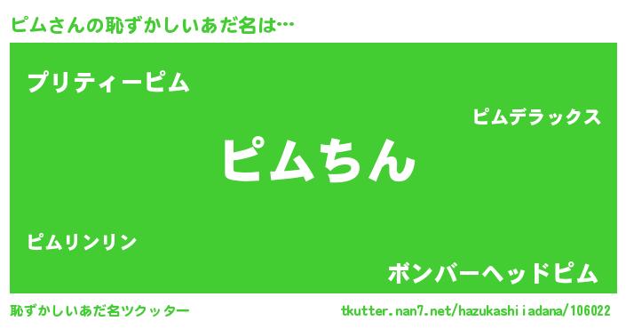 | ポケモン風あだ名 | 『ゼニピム』『ピムチュウ』 |