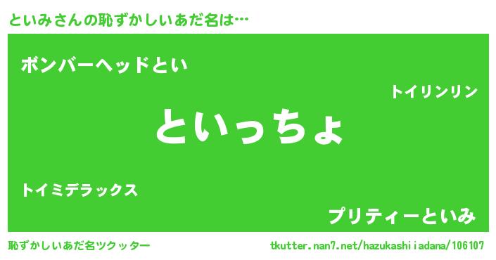 | 意味不明あだ名 | 『といみフォーエバー』『ニラ科といみ属』 |