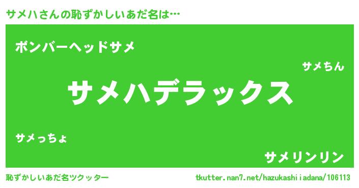 | ヘコむあだ名 | 『サメを』『サメハ(遠い目)』 |