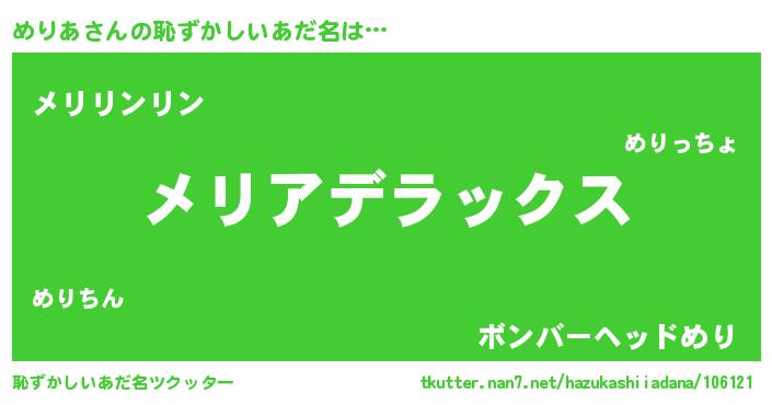 | ヘコむあだ名 | 『めりっ子』『なまこ酢』 |
