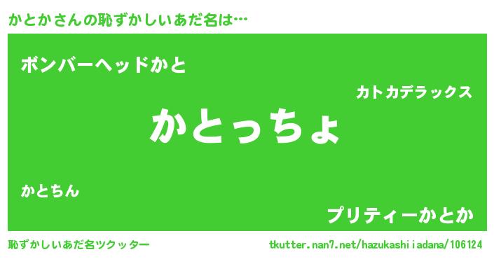 | ヒーロー風カッコイイあだ名 | 『仮面カトダー』『ウルトラかとかマン』 |