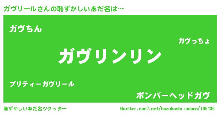 | 欧米人風あだ名 | 『ウサインガヴリール』 |