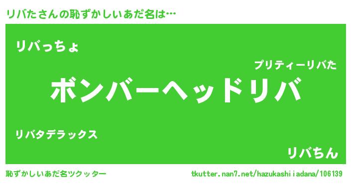 | 意味不明あだ名 | 『住所不定無職リバた(93歳)』 |