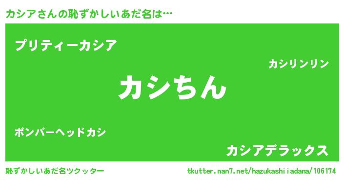 | ヘコむあだ名 | 『カシア(笑)』『カシふぇ~』 |