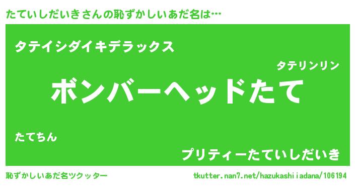| ヒーロー風カッコイイあだ名 | 『慈愛の使者たていしだいき』 |
