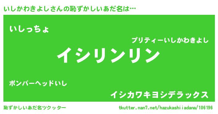 | 男性向けラノベタイトル風あだ名 | 『転生したらいしかわきよしだった件』 |