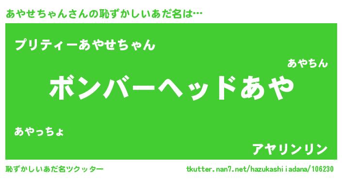| ヘコむあだ名 | 『あやにー』『あや太郎』『つくし』 |
