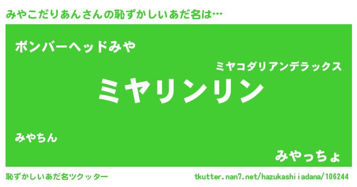 | ポケモン風あだ名 | 『ミーヤイ』『ミヤゴンZ』 |