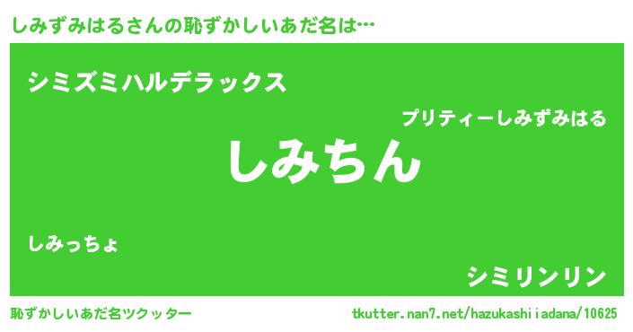 | ヘコむあだ名 | 『しみずみはる(遠い目)』『しみっちょ』 |
