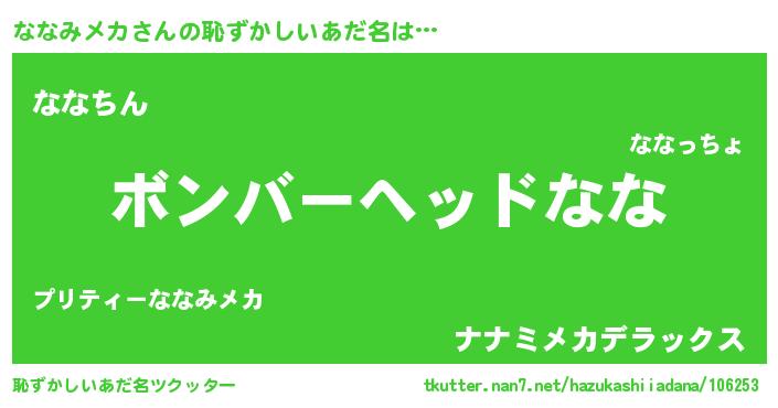 | ヘコむあだ名 | 『ななみメカ(爆)』『レバニラ』 |