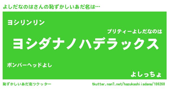 | 意味不明あだ名 | 『自称よしだなのは』 |