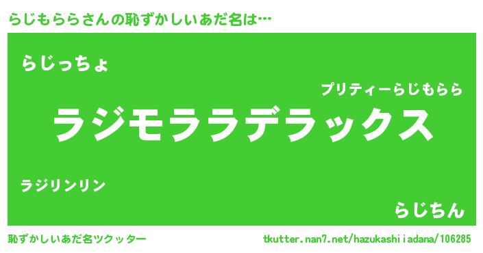 | ファンタジー風あだ名 | 『ゼラジトゥ』『エターナルラジモララー』 |