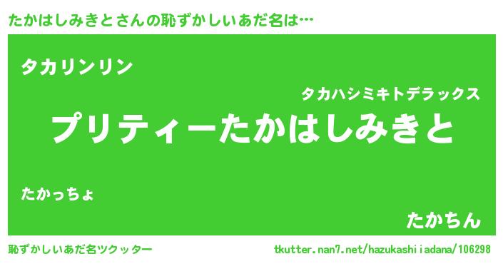 | 男性向けラノベタイトル風あだ名 | 『この素晴らしい世界にたかはしみきとを!』 |