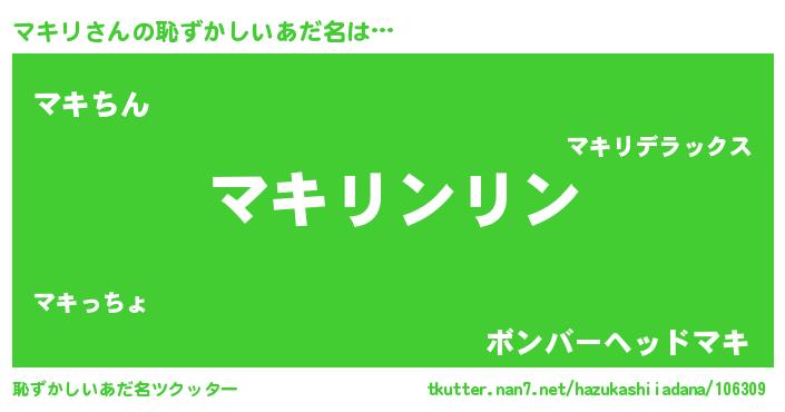 | ヘコむあだ名 | 『マキを』『マキリ(笑)』『つくし』 |