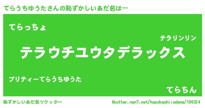 | 欧米人風あだ名 | 『ダレノガレてらうちゆうた』 |
