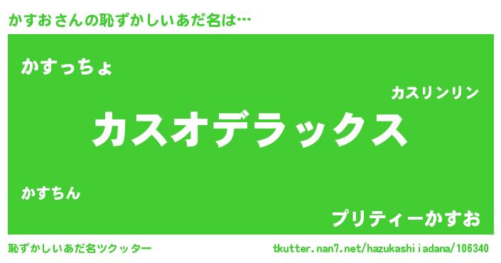 | 男性向けラノベタイトル風あだ名 | 『Re:かすおから始める異世界生活』 |
