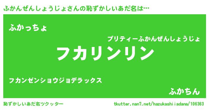 | ヘコむあだ名 | 『ふかっ子』『つくし』『ふかにゅー』 |