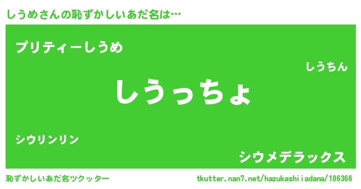 | 欧米人風あだ名 | 『しうめクリステル』『マイケルしうめ』 |