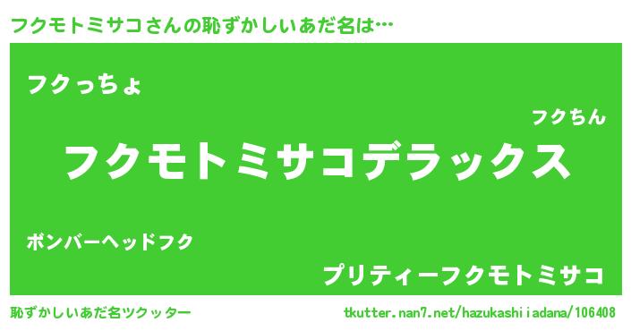 | 男性向けラノベタイトル風あだ名 | 『Re:フクモトミサコから始める異世界生活』 |