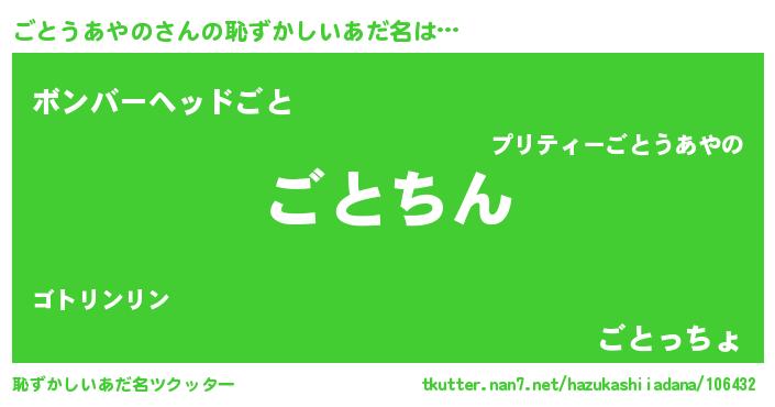 | 可愛いあだ名 | 『ごとうあやのママ』『ぽよごと』 |