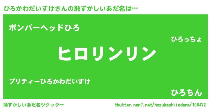 | ポケモン風あだ名 | 『ヒヒロカワダイスケ』『ヒロキング』 |