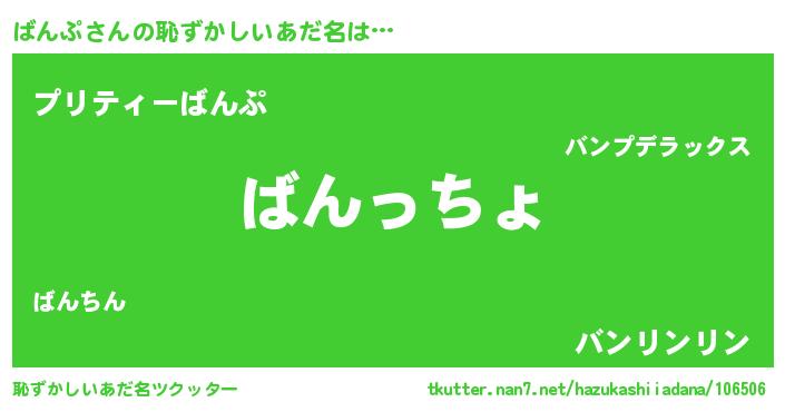 | 意味不明あだ名 | 『ばんぷフォーエバー』『ペロリンばんぷ』 |