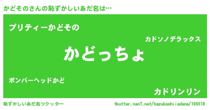 | 意味不明あだ名 | 『かどそのフォーエバー』『自称かどその』 |