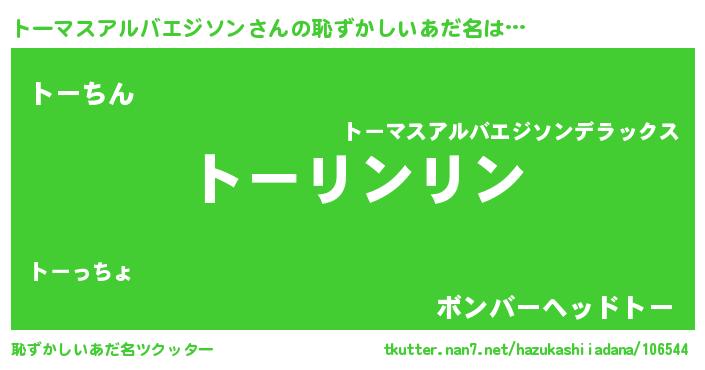 | ポケモン風あだ名 | 『ヒトーマスアルバエジソン』『トーーイ』 |