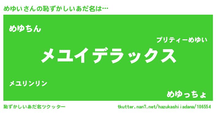 | 意味不明あだ名 | 『自称めゆい』『永久保存めゆい』 |