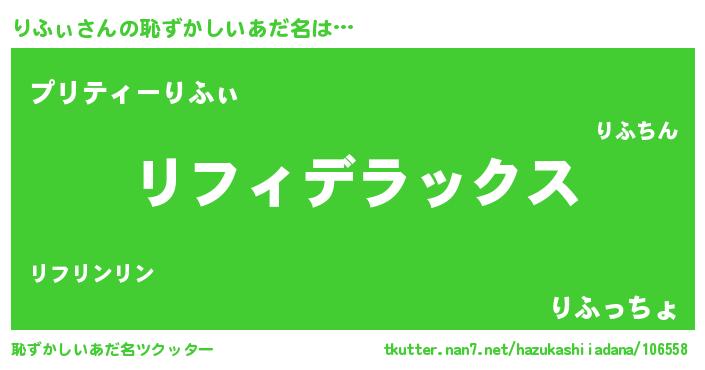 | 意味不明あだ名 | 『自称りふぃ』『ペロリンりふぃ』 |