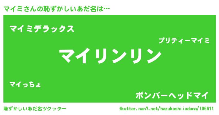 | 男性向けラノベタイトル風あだ名 | 『マイミの嫁は女の子じゃないと思った?』 |