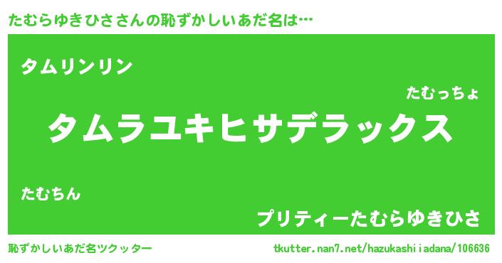 | 女子向けラノベタイトル風あだ名 | 『たむらゆきひさの玉の輿計画!』 |