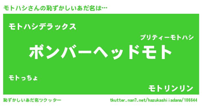 | ヒーロー風カッコイイあだ名 | 『正義の使者モトハシ』『魔戒騎士モト』 |