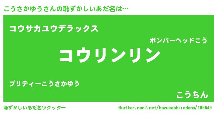 | ヘコむあだ名 | 『こうお』『こうさかゆう(小並感)』 |