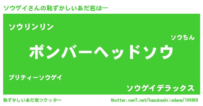 | ヒーロー風カッコイイあだ名 | 『天空の使者ソウゲイ』『魔戒騎士ソウ』 |