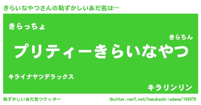 | ヒーロー風カッコイイあだ名 | 『スーパーキライナヤツ』『仮面キラダー』 |