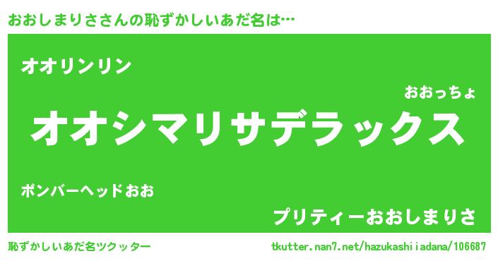| 意味不明あだ名 | 『自称おおしまりさ』 |