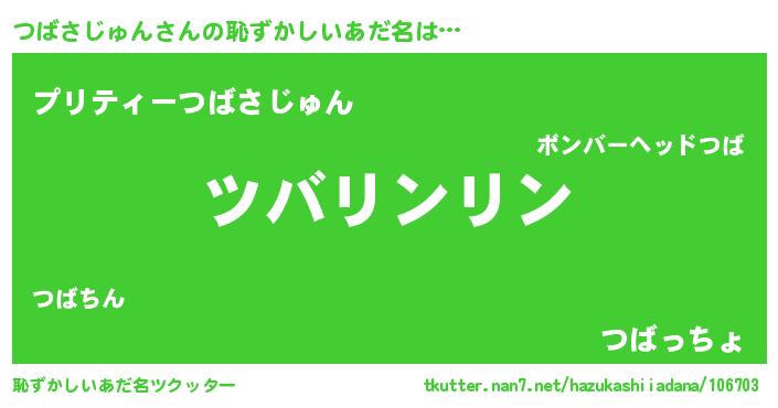 | ヘコむあだ名 | 『つばぷりん』『つばっふぃ~』 |