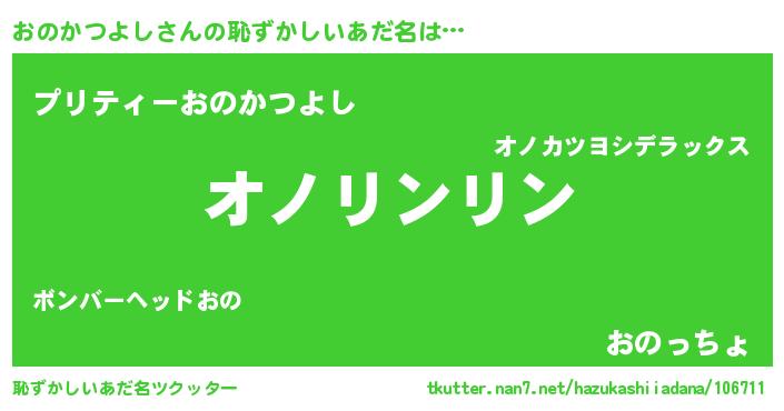 | 男性向けラノベタイトル風あだ名 | 『おのかつよしの嫁は女の子じゃないと思った?』 |