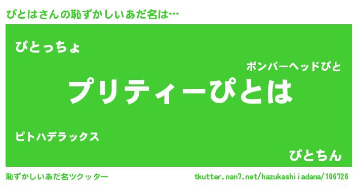 | ヒーロー風カッコイイあだ名 | 『スーパーピトハ』『ウルトラぴとはマン』 |