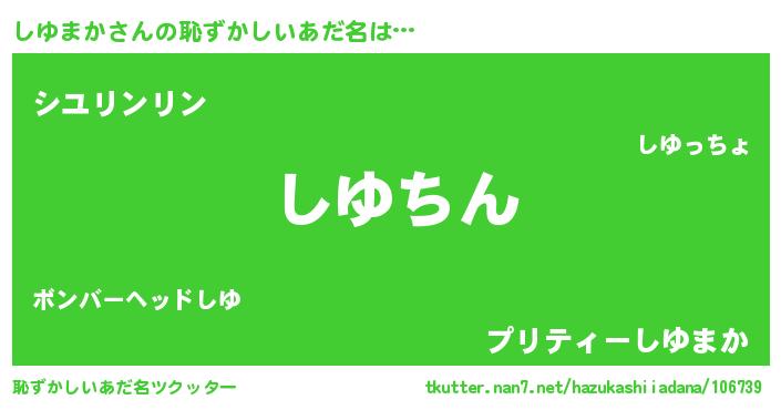 | 意味不明あだ名 | 『永久保存しゆまか』『ペロリンしゆまか』 |