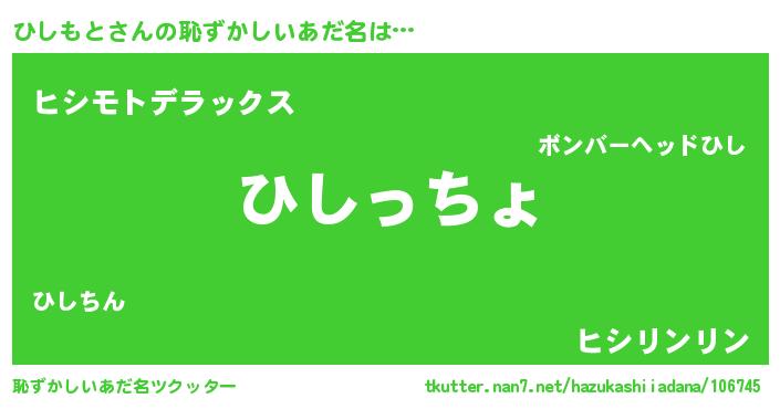 | ファンタジー風あだ名 | 『エターナルヒシモトー』『ゼヒシトゥ』 |